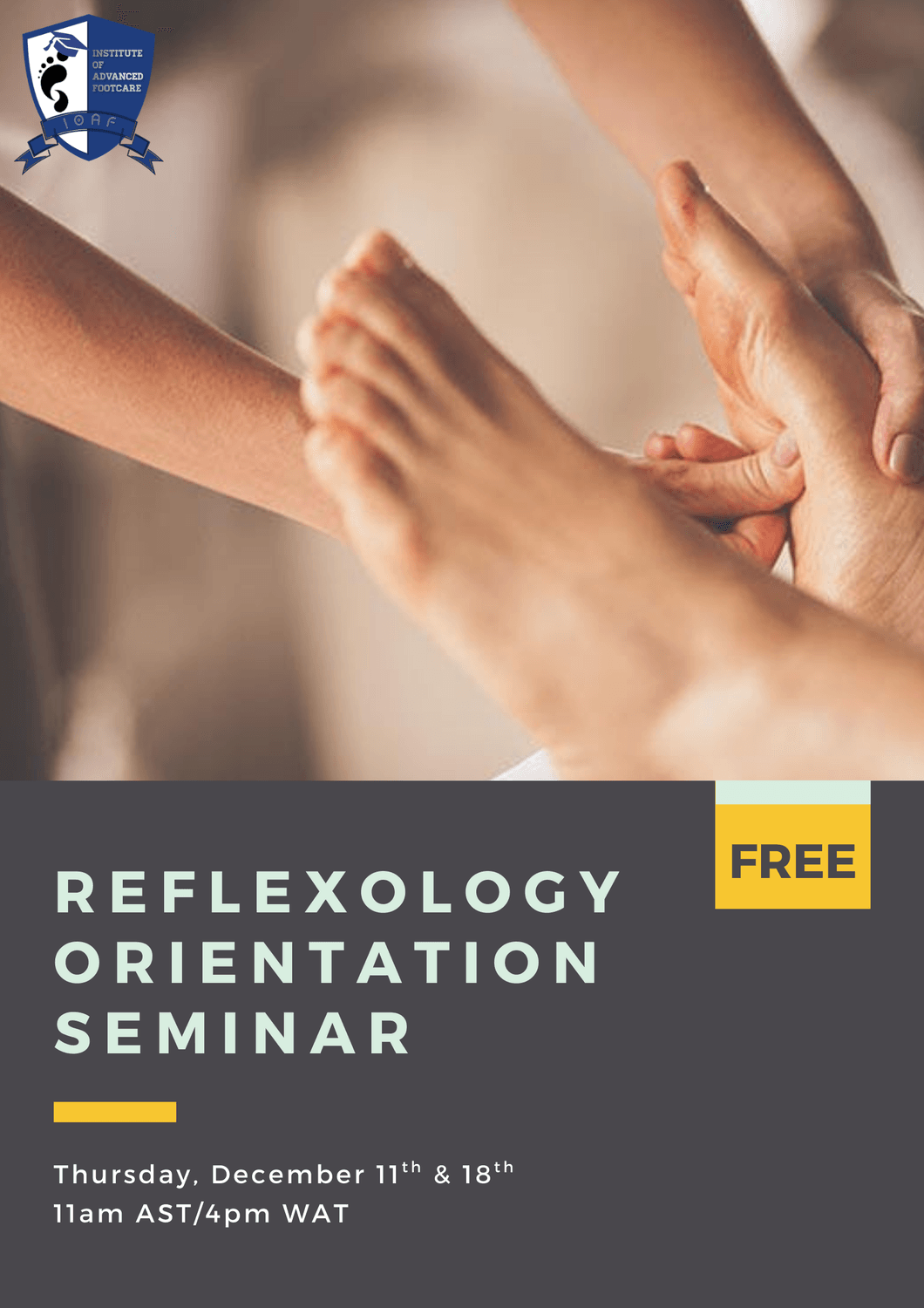 Yes! The webinar on December 04th at 11:00 AM AST | 4:00 PM WAT is completely free. It’s designed to give you a clear understanding of reflexology and how it can become a fulfilling career path.